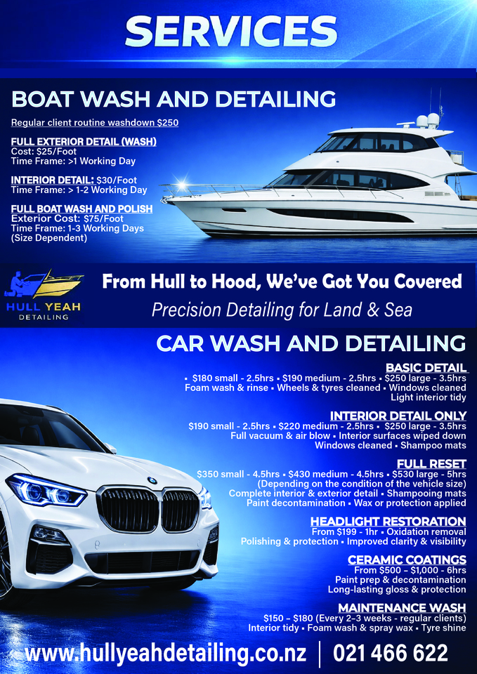 Premium boat and car detailing throughout the Rodney region. At Hull Yeah Detailing, we combine high quality products with meticulous attention to detail to restore, protect and maintain your pride and joy. Whether it’s a vessel heading out to sea or a vehicle turning heads on the road, we make sure it looks its absolute best.